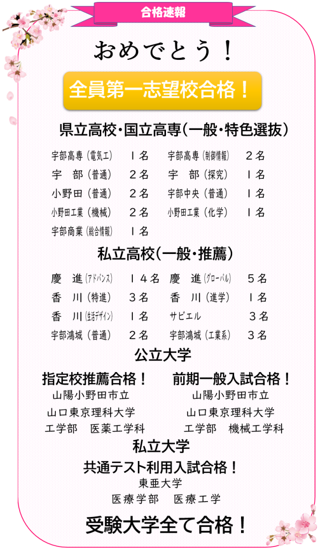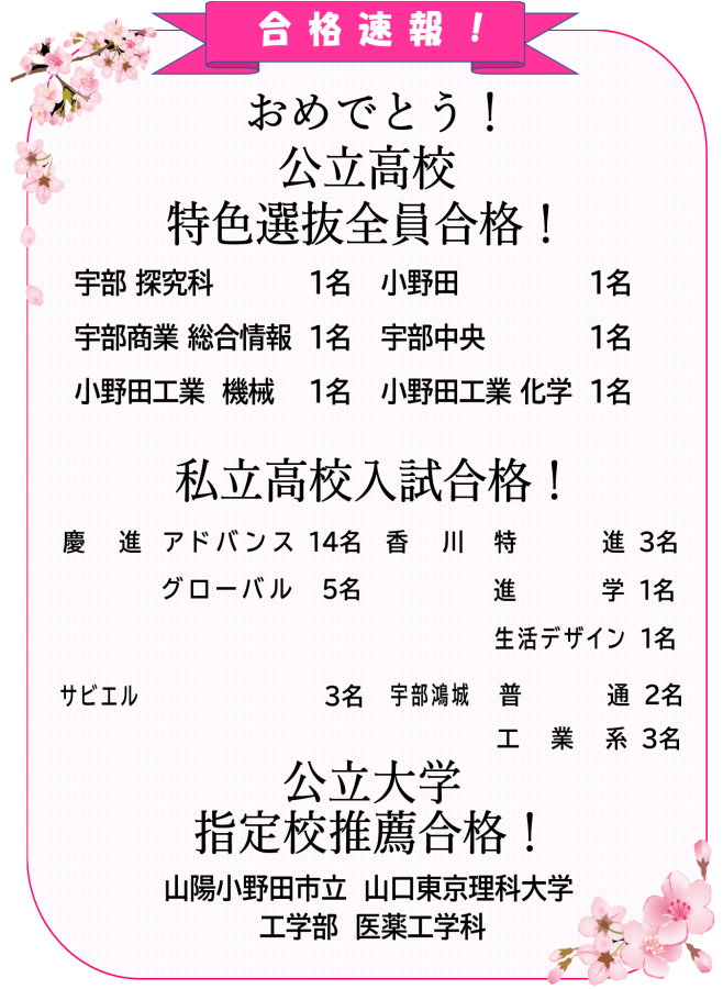 | 英語 | Aクラス | 95.5点 | 国語は8月より授業開始 | ||